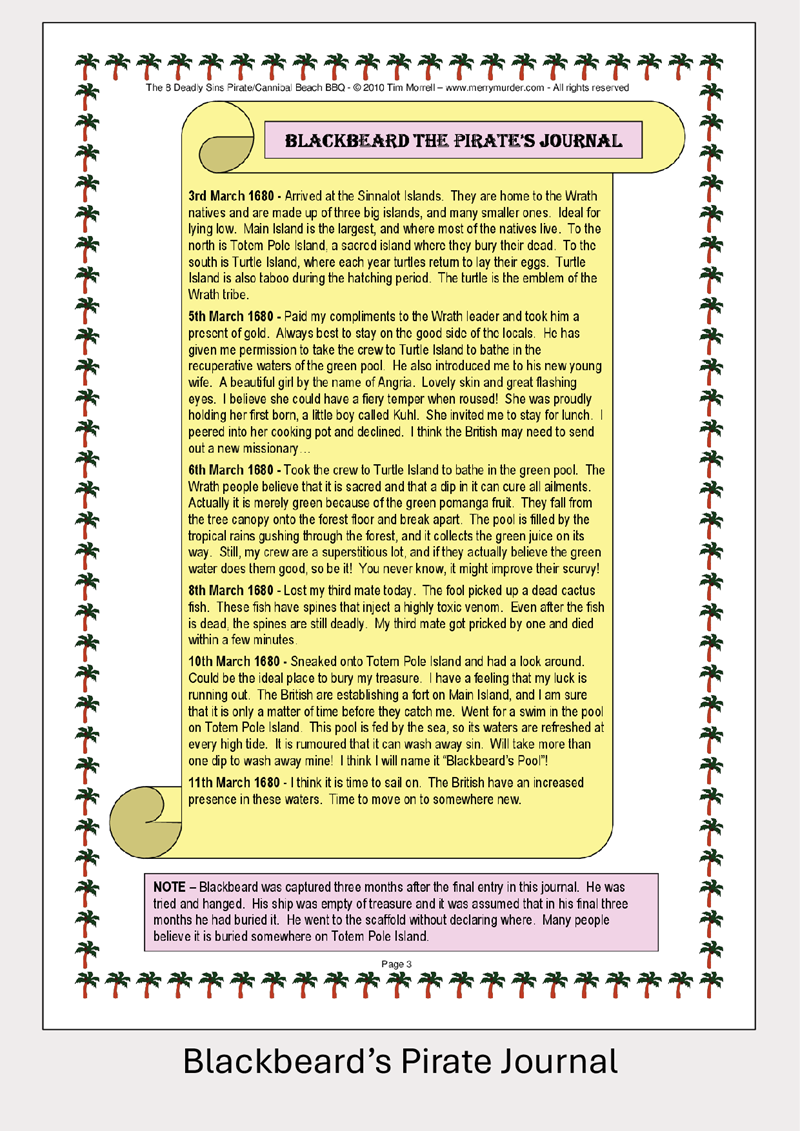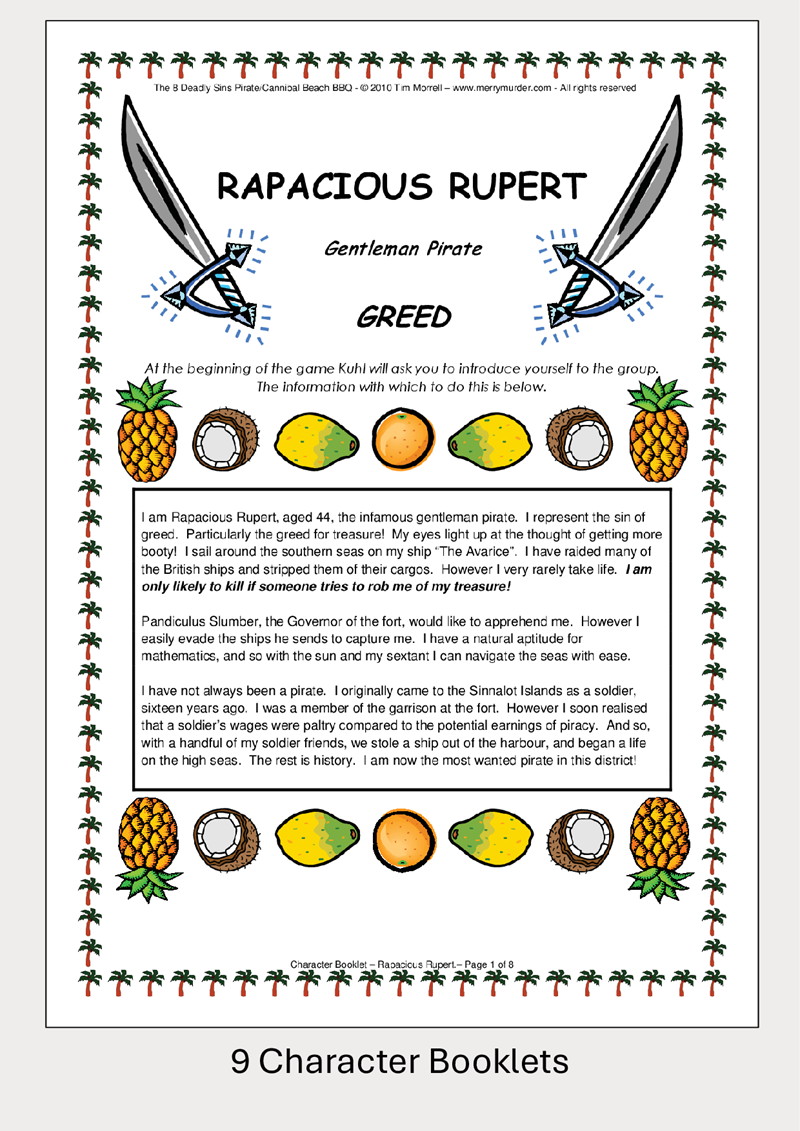 The 8 Deadly Sins Pirate/Cannibal BBQ - 11 to 14 players