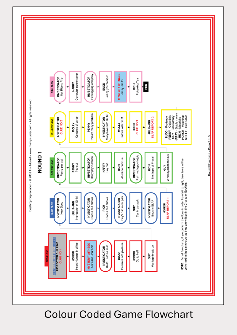 The Round Flowcharts help the host to ensure that the game stays on track and that nobody misses their cue.