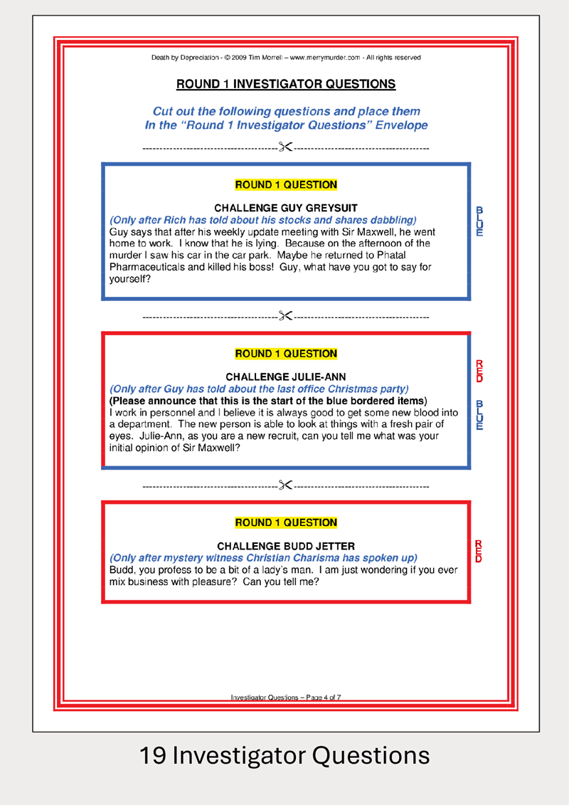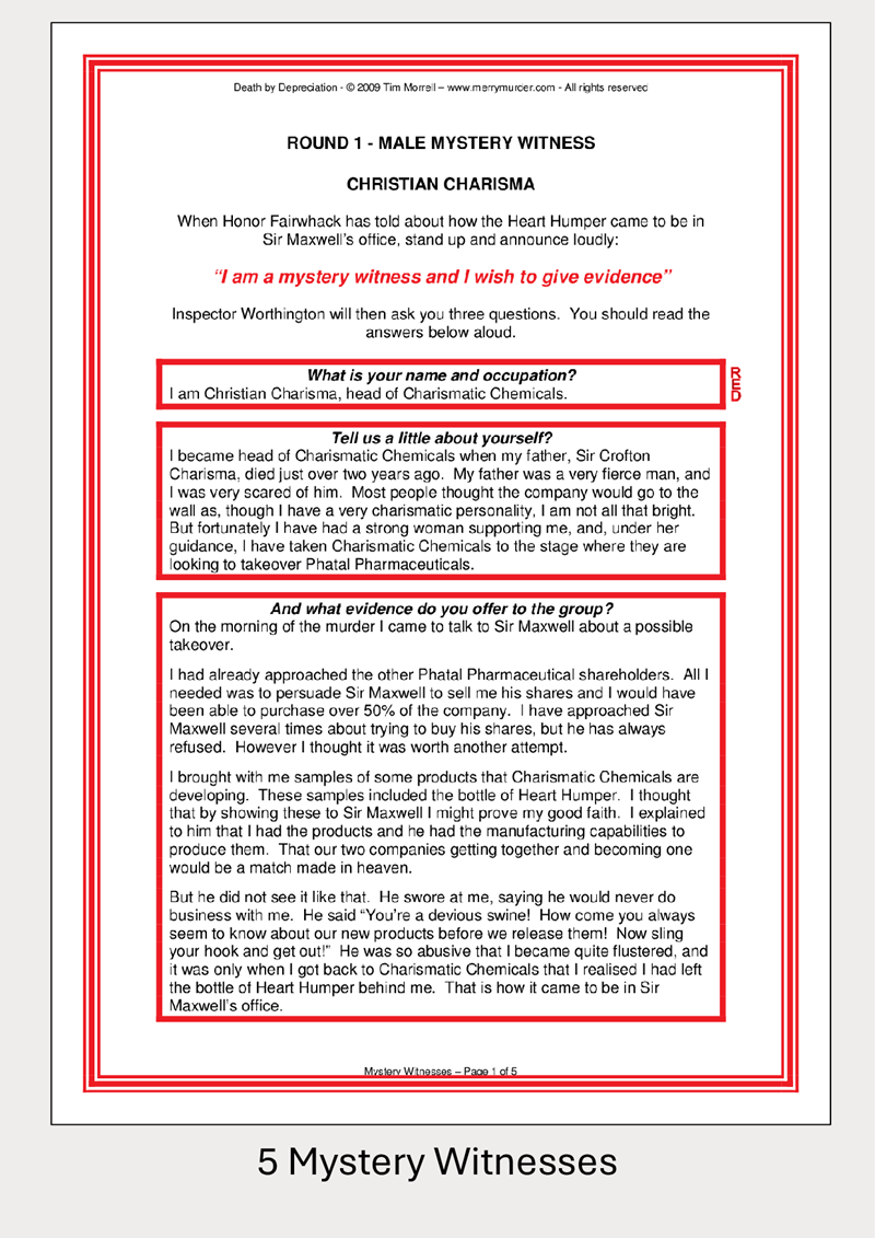 - 1 Denouement Speech (contained in the Inspector's booklet)