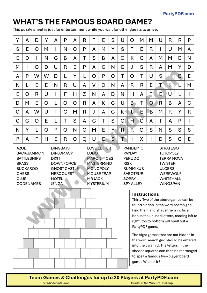 An optional puzzle sheet is also provided. Guests can tackle this at the beginning of the evening while waiting for other guests to arrive.