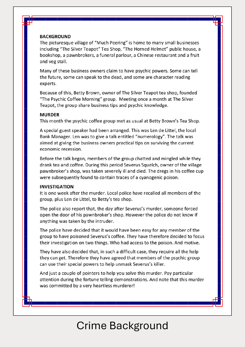 Murder in an Hour at the Psychic Coffee Morning - 4 to 12 players