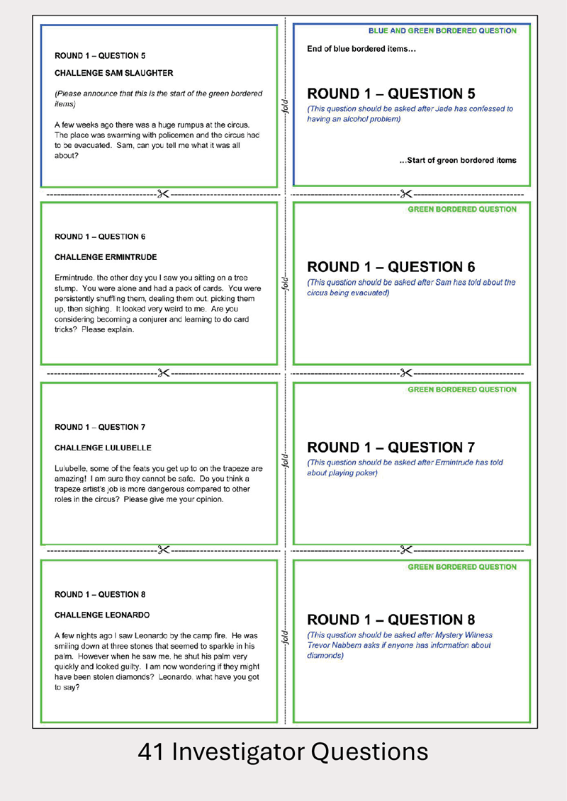 The Round Flowcharts help the host to ensure that the game stays on track and that nobody misses their cue.